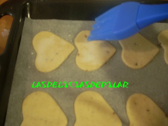 cortado con un corta pastas de corazones y los he puesto en bandeja con papel.